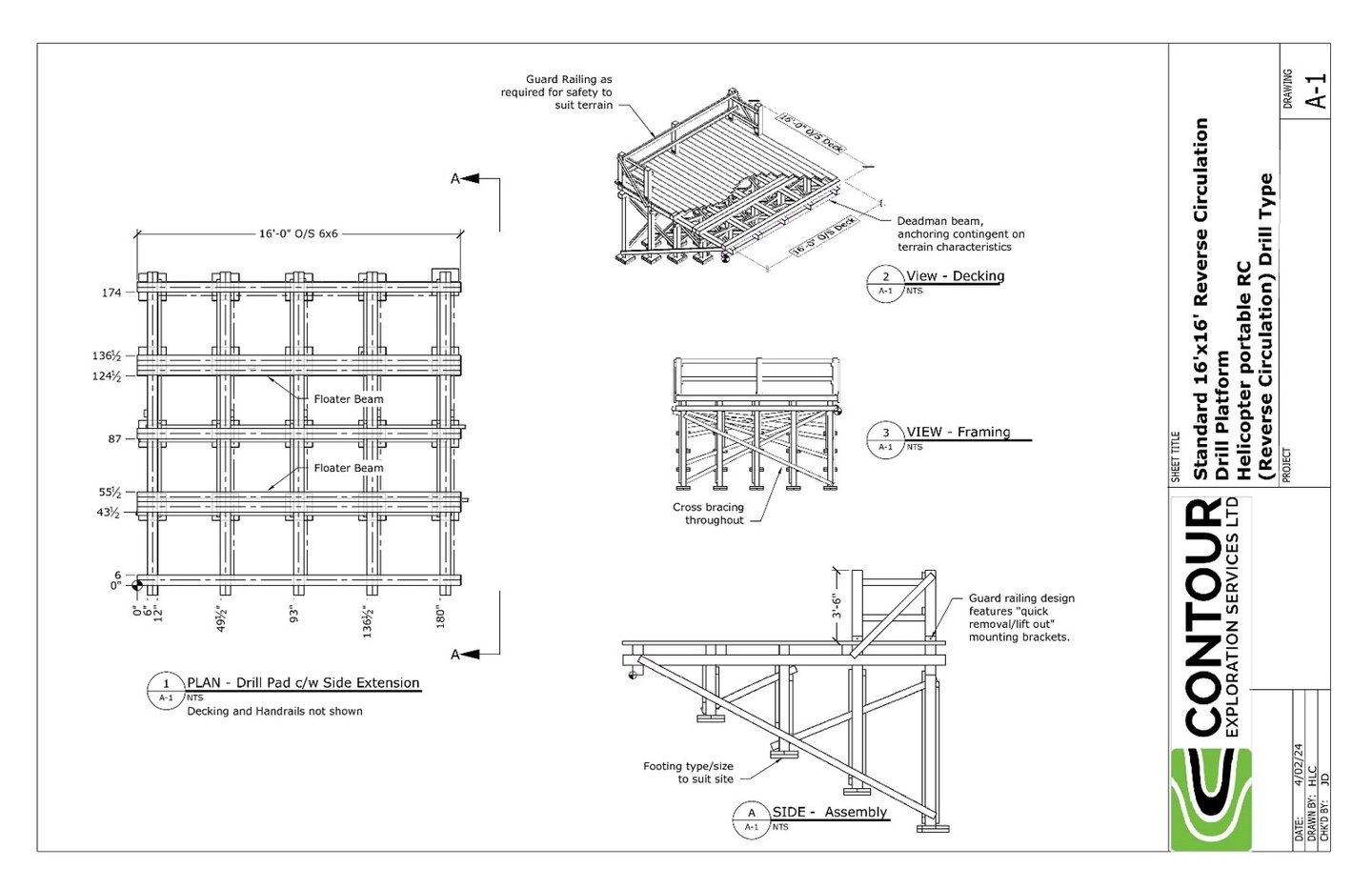 Each drill type necessitates a unique platform, and we have the expertise to construct them all. From small hornet drills with basic beam setups on the ground to more extensive 32' x 32' platforms featuring fall arrest decks, 30' compressor racks, survival shack platforms, separate helipads, and sampling platforms, we've done it all. Whatever your requirements may be, we've got you covered!