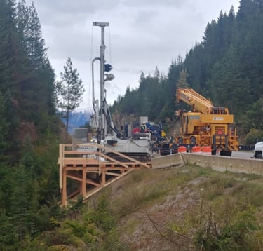 Contour's crew leads have built pads for numerous geotechnical site evaluation programs. We have built on the side of highways, in intertidal zones, tailings ponds, etc. We have built platforms for tracked rigs and large sonic drills.