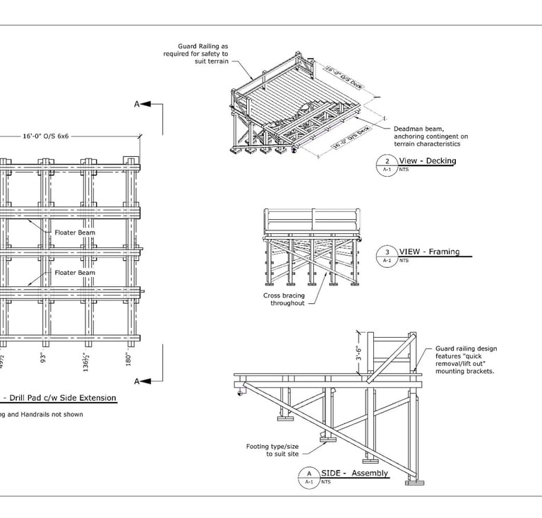 Every drill type, drill contractor, and each and every site, present unique challenges when it comes to constructing the safest and most productive drill platforms. Our engineered pad designs ensure consistent construction methodologies, allowing us to reuse materials efficiently at the next site.